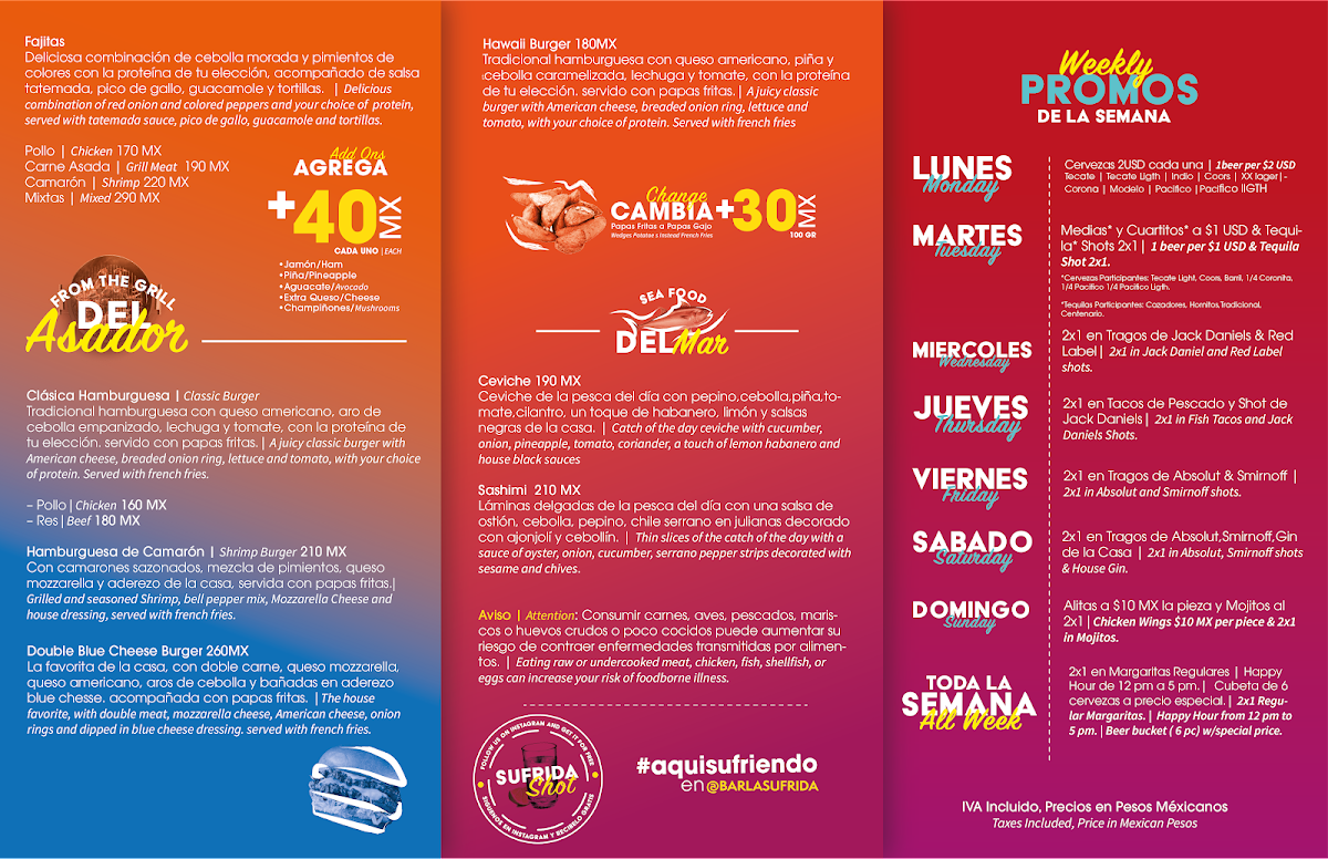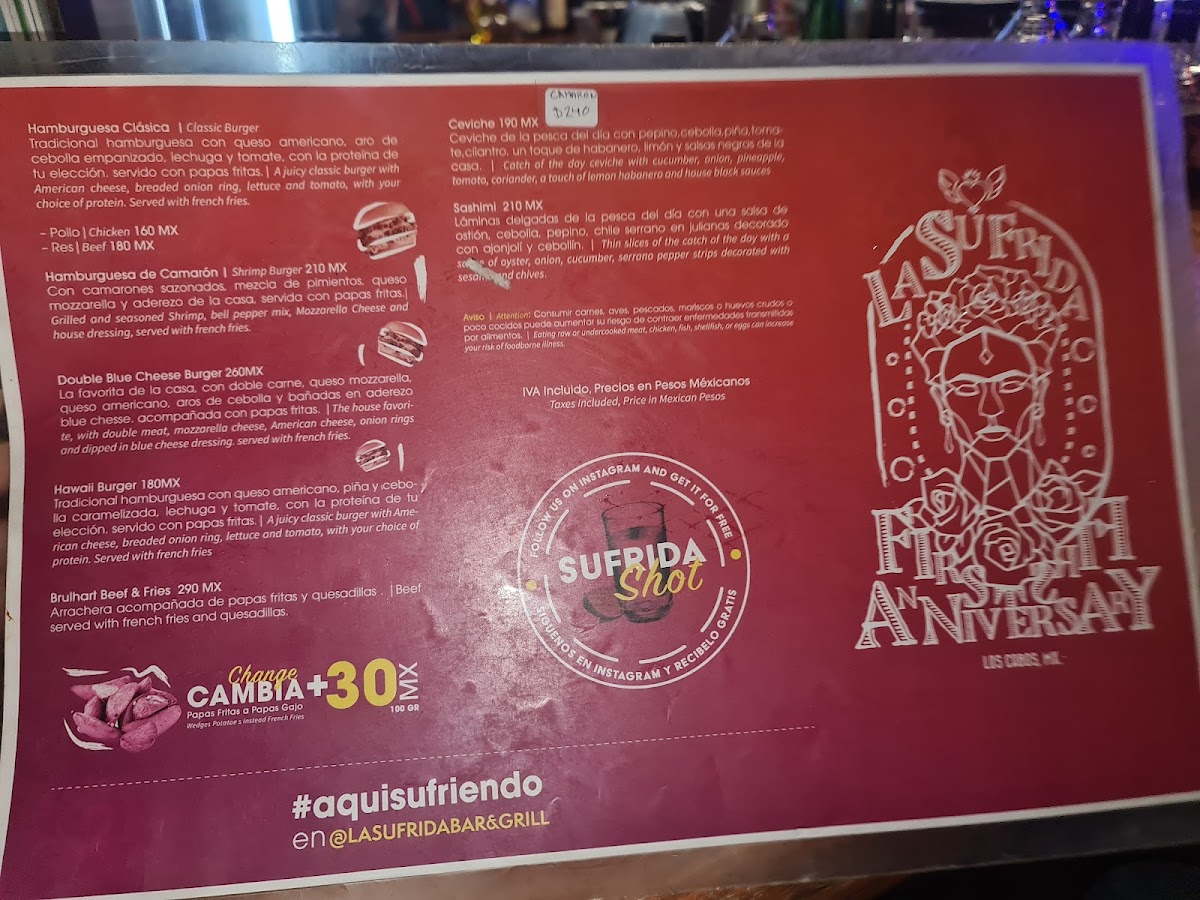 Bar La Sufrida perfectly captures the essence of Cabo with its good vibes, friendly staff, and a menu that reflects the lively culture of the area. Don’t miss out on this must-visit bar for a taste of Cabo’s best!